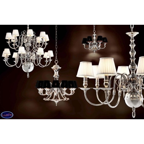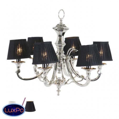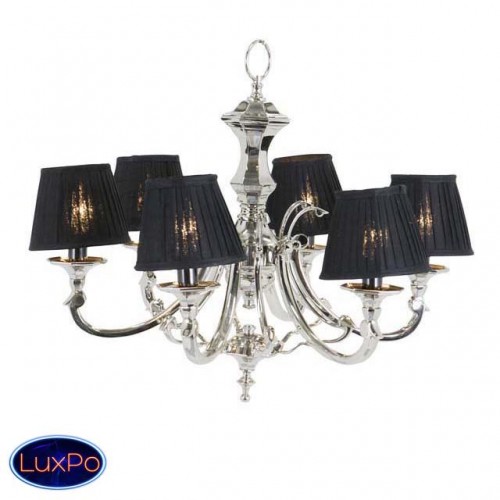 Люстра Chandelier Grenelle на 6 рожков. Цвет металла — никель. В комплекте текстильные плиссированные абажуры белого и черного цвета. (Chandelier 6 Arm)