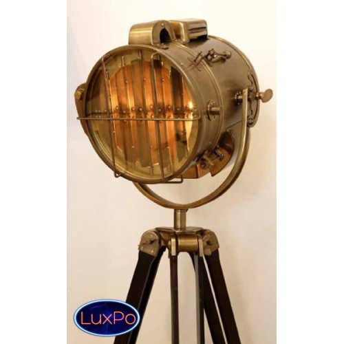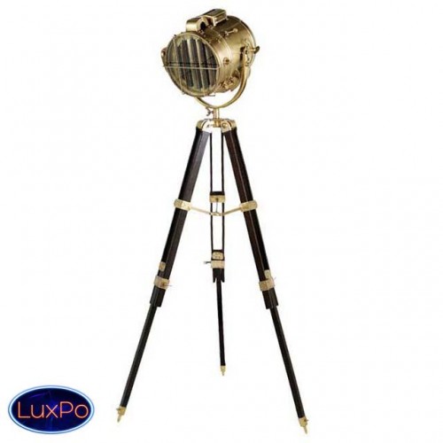 Lamp Atlantic. Лампа из металла и дерева, окрашенного в черный цвет, цвет металла — латунь. Высота и направление света регулируются.