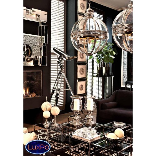 Lantern Residential. Подвесной светильник из металла и стекла. Цвет металла — никель. Высота подвеса регулируется.