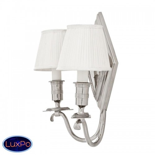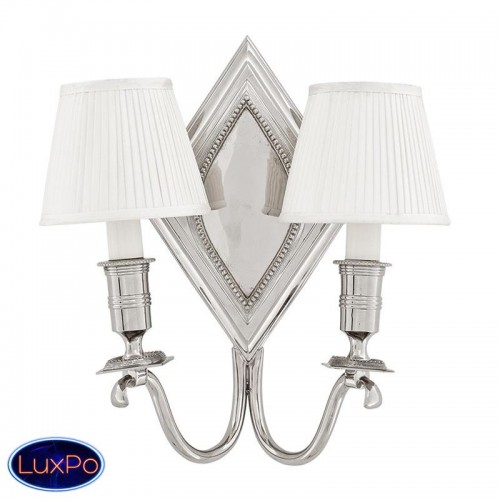 Бра 2-х рожковое Diamond Double на никелированной арматуре. Текстильные плиссированные абажуры белого цвета скрывают лампы.