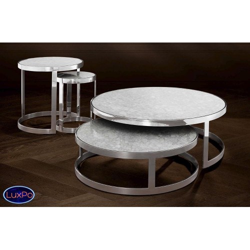 Набор из 2-х журнальных столиков Coffee Table Fletcher set of 2 на основании из нержавеющей стали. Столешницы из мрамора белого цвета. Размеры: 35х100х100 см, 25х80х80 см.
