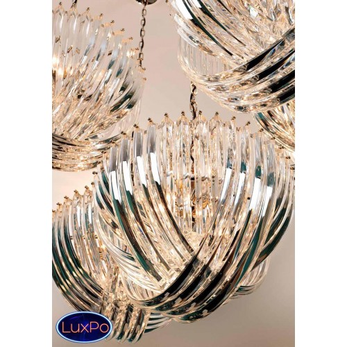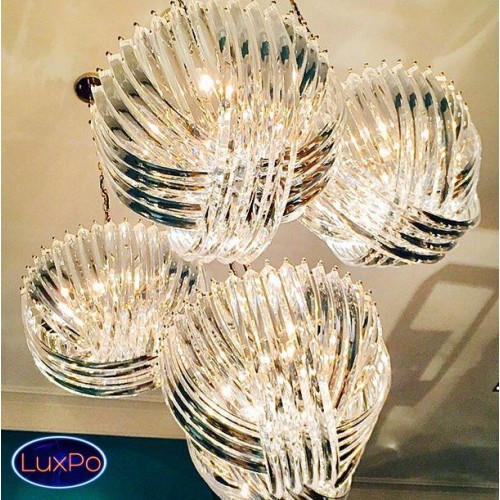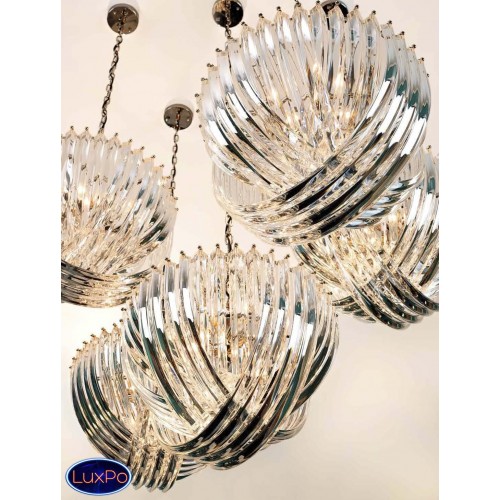 Подвесной светильник Chandelier Murano 50 на никелированной арматуре. Плафон выполнен из нескольких закрученных элементов из прозрачного акрила. Высота светильника регулируется за счет звеньев цепи.