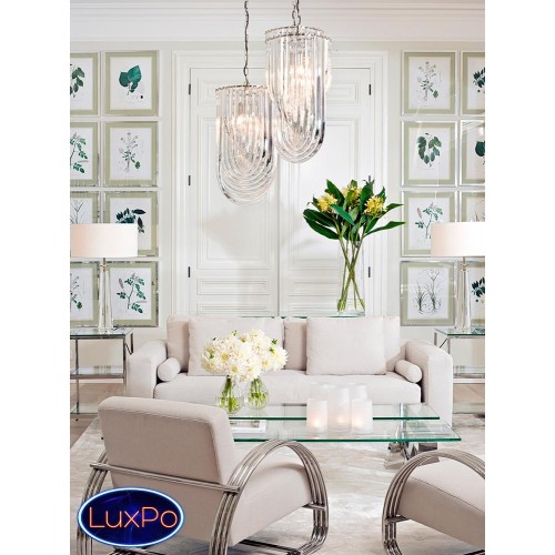 Подвесной светильник Chandelier Murano 25 на никелированной арматуре. Плафо..