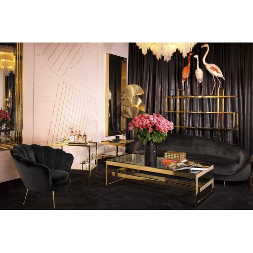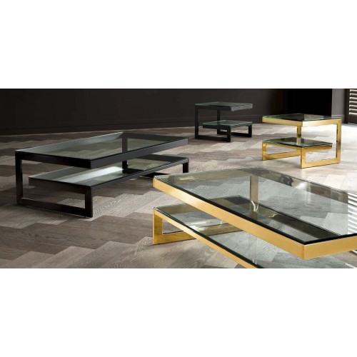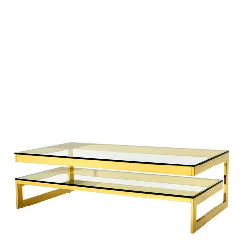 Журнальный столик Coffee Table Gamma на металлическом основании золотого цвета. Столешница выполнена из плотного прозрачного стекла.