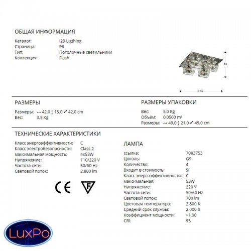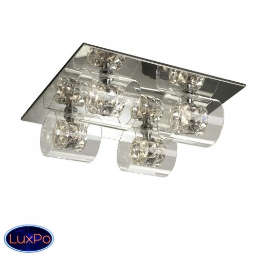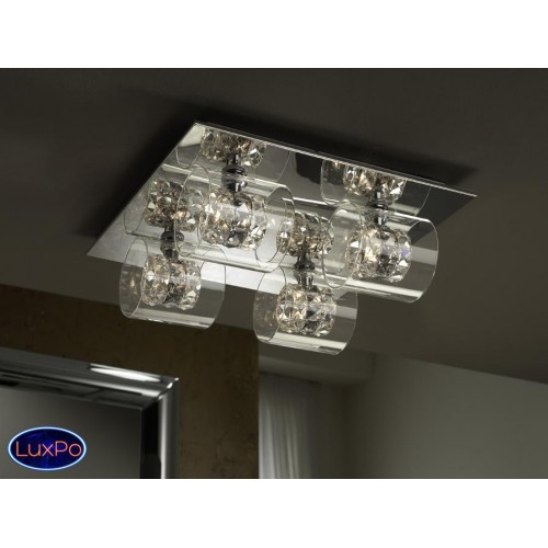 Потолочный светильник из коллекции Flash выполнен из металла с покрытием "блестящий хром". Двойные плафоны: внешняя часть выполнена из прессованного стекла, внутренняя - из кристаллов из прозрачного и дымчатого гранёного стекла.