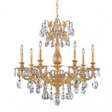 Люстра 6-ти рожковая из коллекции Milano на металлической арматуре цвета фамильное золото. Декор: прозрачные подвески и кулоны из хрусталя Swarovski SPECTRA. Высота светильника регулируется за счет звеньев цепи. Возможны другие варианты хрусталя по типу и цвету, а также различные покрытия металла.