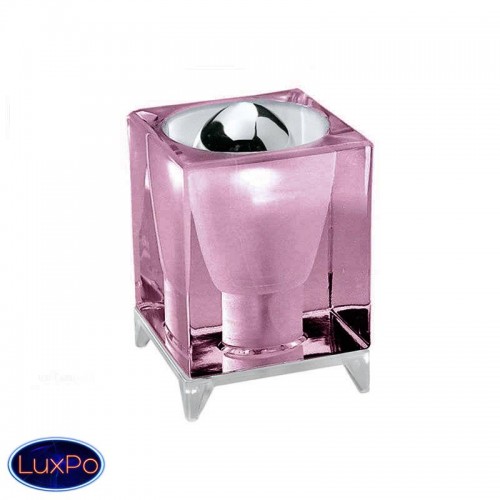 Настольная лампа CUBETTO на хромированных металлических ножках. Плафон выполнен из хрусталя розового цвета.