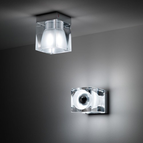 Настенный или потолочный светильник Cubetto. Квадратный рассеиватель из хрусталя (24% окиси свинца), внутренняя часть — пескоструйная обработка. Металлическое крепление из блестящего хрома. Дизайн Pamio. Арт. D28G0100