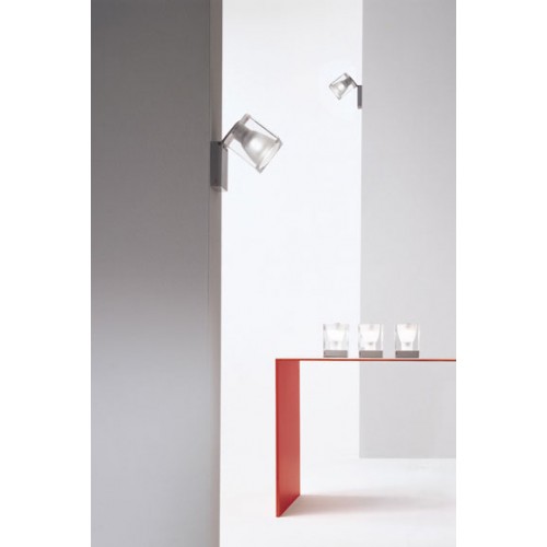 Настенный или потолочный светильник Cubetto. Квадратный рассеиватель из хрусталя (24% окиси свинца), внутренняя часть — пескоструйная обработка, угол наклона регулируется. Металлическое крепление из блестящего хрома. Дизайн Pamio. Арт. D28G0400