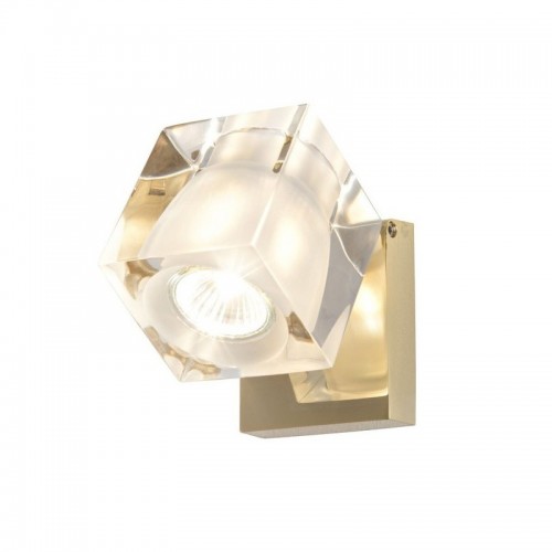 Настенный и потолочный светильник Cubetto с поворотным плафоном. Квадратный рассеиватель выполнен из прозрачного хрусталя. Металлическое крепление цвета латунь.